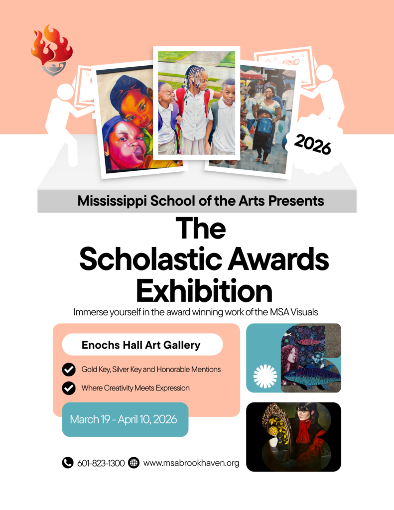 Visual Arts EVENT DATE Mar 19, 2026 - Apr 10, 2026 5:30pm LOCATION MS School of the Arts 355 West Monticello St. Brookhaven, Mississippi DETAILS