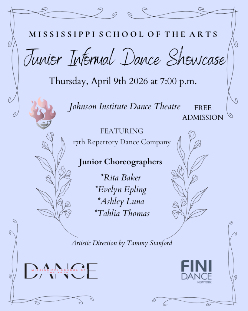 Dance Arts EVENT DATE Apr 9, 2026 7:00pm LOCATION Dance Studio (MSA) 308 W. Cherokee St. Brookhaven, Mississippi CLEAR BAG POLICY This event is subject to a clear bag safety policy. Click Here for more information. DETAILS