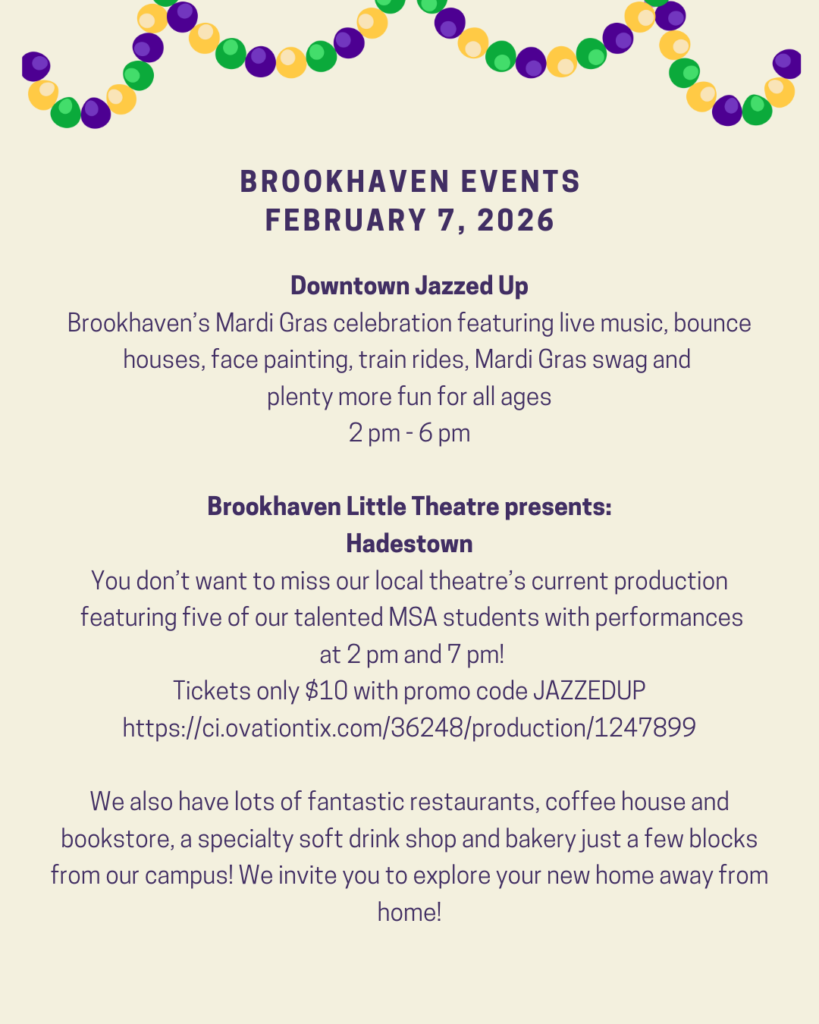 Calling all Prospective Students and their Families! Saturday, February 7 will be the MSA Preview Day to showcase our arts programs and offer tours to students interested in the Mississippi School of the Arts! There is a session in the morning and the afternoon to allow families to target the arts discipline of choice. We welcome you to stay all day if you are curious about several art forms!