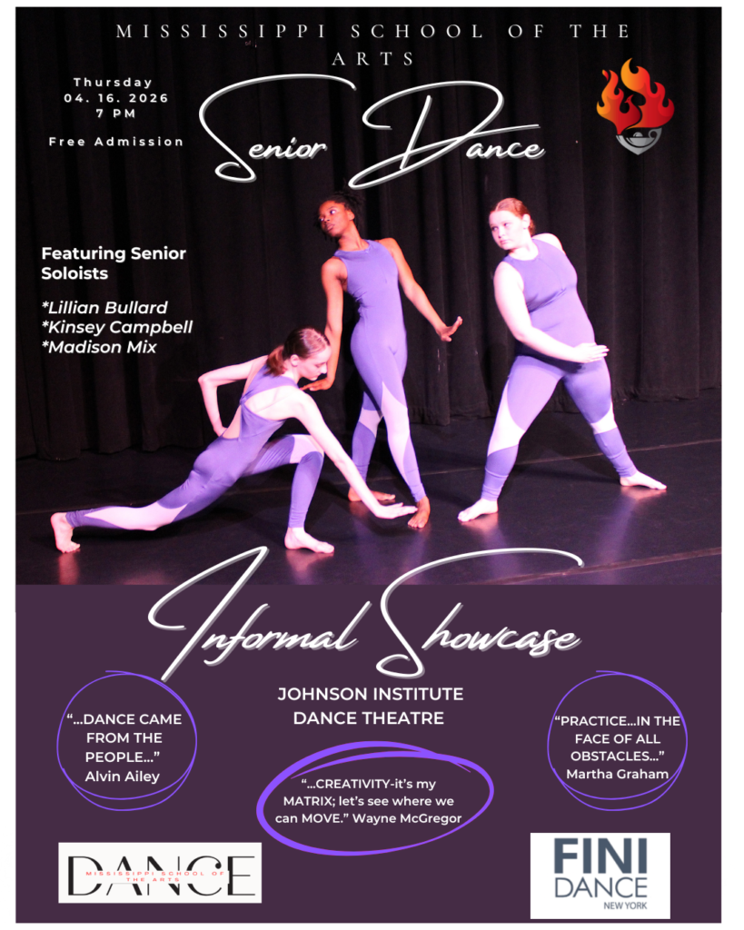 Dance Arts EVENT DATE Apr 16, 2026 7:00pm LOCATION MS School of the Arts 355 West Monticello St. Brookhaven, Mississippi CLEAR BAG POLICY This event is subject to a clear bag safety policy. Click Here for more information. DETAILS